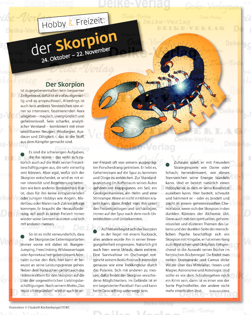 Charakteristiken: Der Skorpion (Hobby & Freizeit)