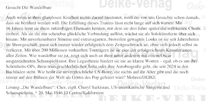Cher (Personenrätsel) KW 2126