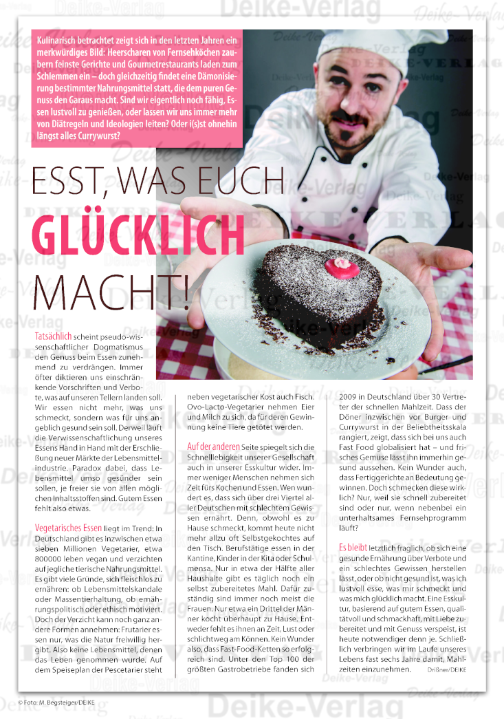Kulinarisch betrachtet zeigt sich in den letzten Jahren ein merkwürdiges Bild: Heerscharen von Fernsehköchen zaubern feinste Gerichte und Gourmetrestaurants laden zum Schlemmen ein – doch gleichzeitig findet eine Dämonisierung bestimmter Nahrungsmittel statt, die dem puren Genuss den Garaus macht. Sind wir eigentlich noch fähig, Essen lustvoll zu genießen, oder lassen wir uns immer mehr von Diätregeln und Ideologien leiten?