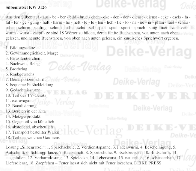 Feuer lässt sich nicht mit Feuer löschen - Silbenrätsel KW 3126