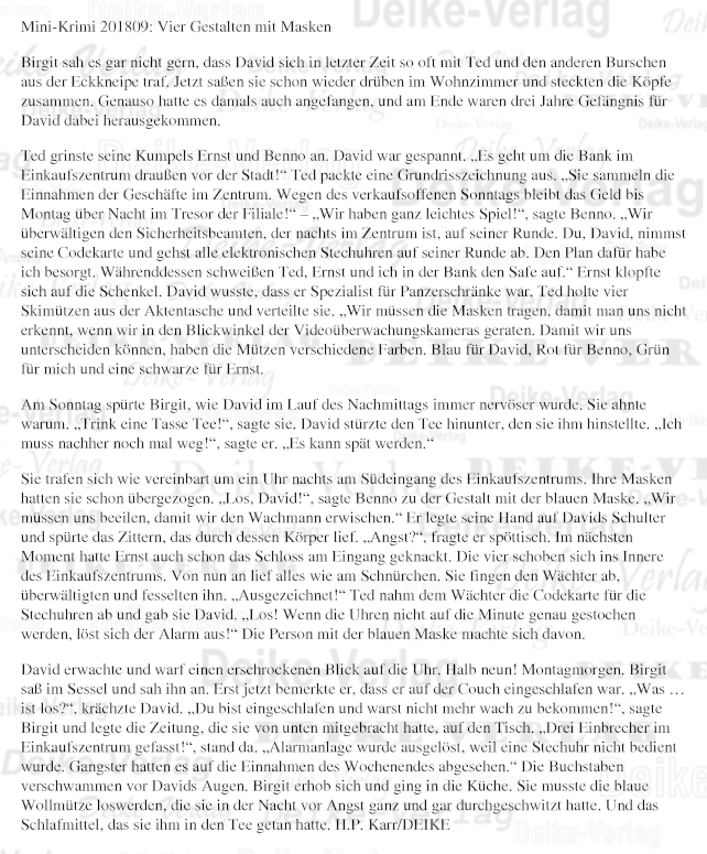 Vier Gestalten mit Masken - Mini-Krimi 201809