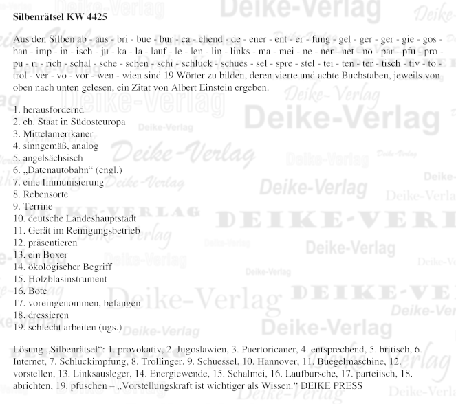 Vorstellungskraft ist wichtiger als Wissen - Silbenrätsel KW 4425