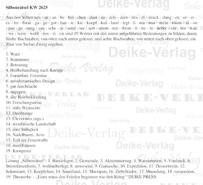 Einer muss den Frieden beginnen wie den Krieg - Silbenrätsel KW 2625