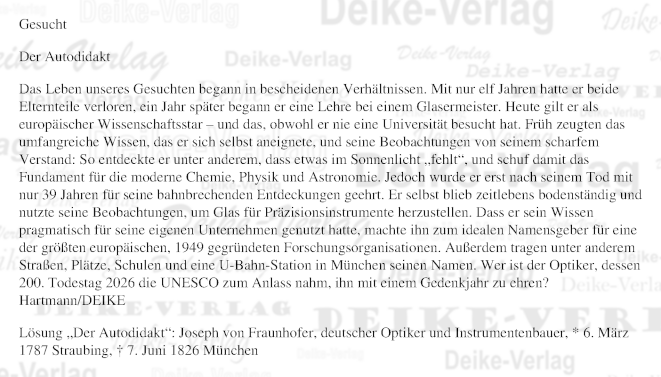 Joseph von Fraunhofer - Personenrätsel KW 2326