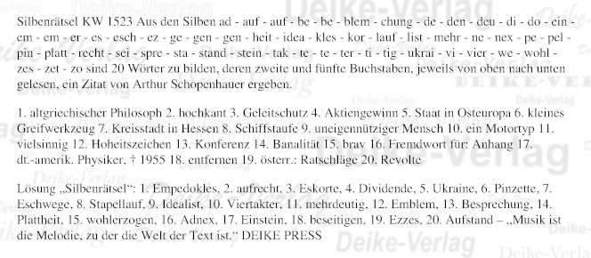 Musik ist die Melodie, zu der die Welt der Text ist (20 Abfragen) - Silbenrätsel KW 1523