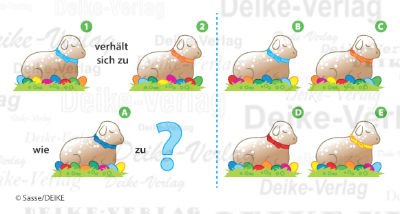 Welche der Figuren bildet mit A ein Paar, das sich analog zu 1 und 2 verhält?