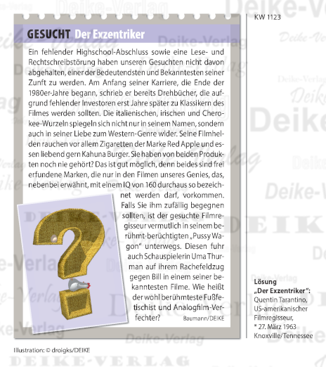 Quentin Tarantino - Personenrätsel KW 1123