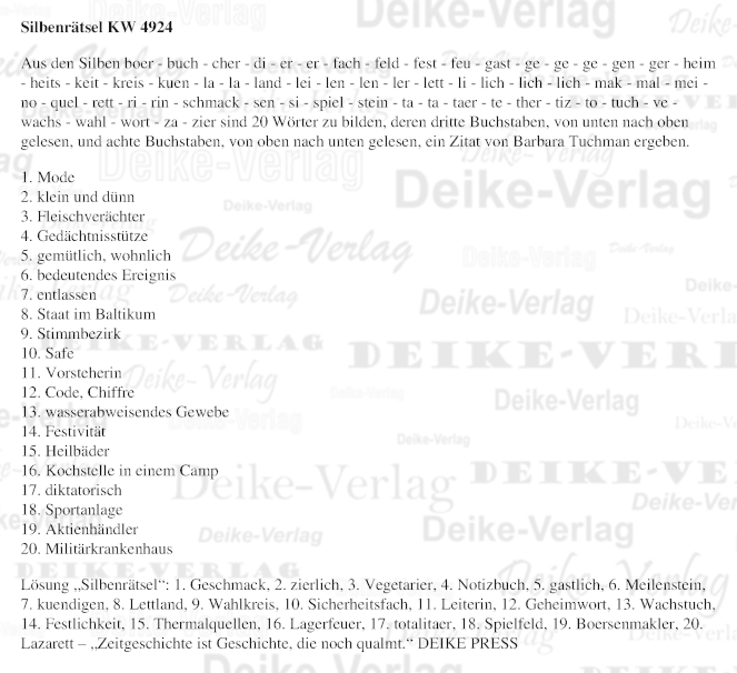 Zeitgeschichte ist Geschichte die noch qualmt - Silbenrätsel KW 4924